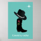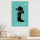 Country hat and boot on teal Poster. Text can be personalised. Ideal for people who like country life.