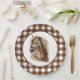 A Classic Brown Gingham With A Water Coloured Brown Horse Centre Paper Plate