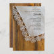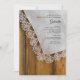 Invite guests to your celebration with the rustic chic Country Lace Baby Shower Invitation. This charming custom ranch theme baby shower invite features a quaint photograph of an off white cream coloured lace trimmed handkerchief and a brown barn wood background.