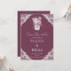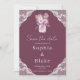 The invitation features a rich burgundy hue that exudes warmth and sophistication. Framing each corner are delicate white lace borders, adding a touch of vintage elegance and enhancing the invitation's romantic appeal. The combination of burgundy and lace creates a visually striking contrast that is both captivating and timeless.