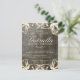 Country Lace Rustic Graduation Photo Invite. A very classy lace doily with burlap shabby chic graduation invitation featuring fancy Victorian lace on the top and bottom and a wood plank textured background. Makes a great dimensional paper product for your graduate with great detail in not only the lace, but the layering of the burlap and lace pieces together! Metal buttons adorn the lace in the centre. Add your graduates photo on the back for an elegant and personal touch creating memories to come. A great gift for your loved ones!