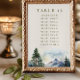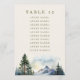 Wedding Seating Cards with editable table number and list of guest names in olive green on cream. This watercolor design depicts a serene mountain top scene with majestic pine trees in the forefront. Browse my Country Lake Wedding collection for co-ordinating invitations, stationery, signs and wedding décor. Message me if you need me to add any additional templates.