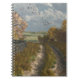 A country lane winds through the trees, resplendent in their autumn finery as falling leaves swirl in the gentle breeze in this original digital artwork created in Vue by artist Jayne Wilson.