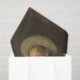 This design features a painting by the American artist Thomas Eakins (1844–1916). It shows a rural country man playing traditional bluegrass or country music on a banjo. He is singing as he accompanies himself with his musical instrument. The man is dressed like a cowboy and he may have worked on a ranch during the day. He is sitting on a simple wooden stool as he plays his music. The background is a brown watercolor wash. The man could have been singing about his daily life as he plucks the strings of his beloved banjo.