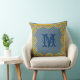 A pretty Cushion or Throw Pillow to personalise with initials or monogram, with a border of Pot Marigold flowers on an Indigo background. Part of the Posh & Painterly 'Marigold Medley' collection.