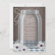 Rustic and beautiful Southern country bridal shower invitations featuring an illustration of a mason jar with twine tied around the neck of it, white and purple daisies laying at the foot of the jar, a white & blue gingham table top, over a vintage brown background. Your shower details are contained within the glass jar, to where if your text extends into the shading of the jar, the text will be shaded too (recommended to keep lines short). The backside of these invitations offer the option to have the Registry information or other details as well.