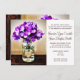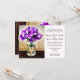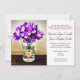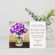 These rustic country wedding invitations feature a mason jar with purple hydrangea flowers sitting on a rustic wooden bench. The mason jar has a wooden heart on the front of it. The same mason jar and hydrangea flowers design is also on the back of the wedding announcement in full colour. Just add your wedding invitation wording to the template fields. Use the "Customise It" button if you need to move things around or change font style or font colour.