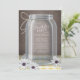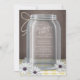 Rustic and beautiful Southern country ladies birthday party invitations featuring an illustration of a mason jar with twine tied around the neck of it, white and purple daisies laying at the foot of the jar, a white & yellow gingham table top, over a vintage brown background. Your celebration details are contained within the glass jar, to where if your text extends into the shading of the jar, the text will be shaded too (recommended to keep lines short).