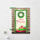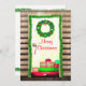 Greeting card with my design of the door of a log cabin decorated with a wreath, garland, a candy cane on the doorknob, plus Christmas gifts on the doorstep. My customisable verse is on the back.