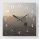 Wall clock featuring a peaceful fine art photo of a horse eating some grass in the middle of a field of rolling hills during a foggy morning in Ozark Missouri in late winter. Looking for more prints or products? Feel free to visit my store: http://www.zazzle.com/timelessmomentsphtgy