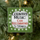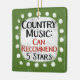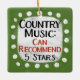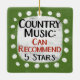 A funny typographic design that says "Country Music: Can Recommend, 5 Stars". It's black and red text on a white rectangle with funky, playful white dots surrounding it, all on a green background.