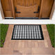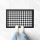 This doormat is shown with a country style black and white gingham plaid print with a Black border.