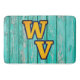 If you know and love the great state of WV, then you'll love this design. Features the letters W V that are in that most famous Yellow Gold colour, and outlined in Purple. The lettering text font sits nicely on a old, Blue Green distressed, peeling paint pattern background. The wooden texture has an old, country cottage farmhouse style, with rustic charm that is simply stunning. Show that good ol' country West Virginia Blue and Gold pride with this design.