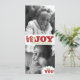 Red & Green Country style type exclaims Love & Joy across two customisable family photos on this charming holiday photo card.