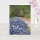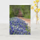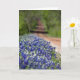 Bluebonnets line this country road near Waco, Texas. The dirt road rises and dip under an arch of trees, and disappears into the distance. The card is left blank and customisable so that you may use for any occasion by adding your own text.