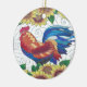 This fun illustration would be a great addition to your country chic charm decor or as a present for someone who collects chickens or roosters. This is a watercolor pencil illustration of a rooster done in rust red, browns and blues with sunflowers at the top and bottom to make a border. It is all framed in with a blue and white gingham checked pattern.