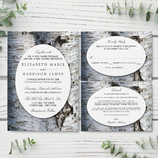 Country Rustic Birch Tree Wedding Invitation