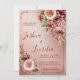 Country rustic boho terracotta earthy flowers rose gold shimmer background wedding invitation. With QR RSVP at the back, can add there other wedding details as well.