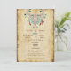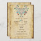 Rustic yet elegant wedding invitation with tea stained, grunge paper background. Native American watercolor of a Deer Skull decorated with feathers, beads and greenery. Text font and colour can be changed to whatever you like.