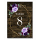 Country Rustic Floral Purple and Gold Wood Wedding Table Number