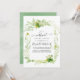 Watercolor greenery online long distance virtual wedding invitation featuring ferns, wildflowers and strawberries and a sage green watercolor wash background.