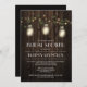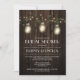 Country Rustic Lights Bridal Shower Invitations - features a country barn wood background with twinkle lights around grapevine with hanging mason jars that are also lighted or filled with fireflies - firefly design.