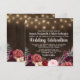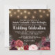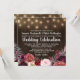 Country Rustic Marsala Peony Wedding Invitations - features a rustic barn wood background with string lights. The bottom features various elegant watercolor peony flowers, roses and floral elements in shades of grey, pink, burgundy, wine and Marsala. NOTE: This is presized at 5.25 inches by 5.25 inches. A presized 5 by 7 inches & presized 4.5 by 6.75 inches is also available. See the collection found on this page for that item and to also see the full matching product designs to complete your event.