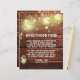 Rustic country wood mason jar wedding string of lights tree branch with green leaves Honeymoon Fund card paper. The glowing string of lights illuminate the green leaves against a beautiful rustic dark brown wood. This rustic wedding design is customizable and perfect for your beautiful outdoor country wedding. You can personalize by changing the text and adding images if you like. You can also choose a different paper type and thickness. For matching items, please see the collection below with other items in the rustic wedding suite.