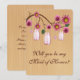 Every bride's perfect day includes her friends. Who do you trust to give a speech and perform duties like helping you choose bridesmaids' dresses so your wedding plan goes off without a hitch? Whether it's your responsible sister, cousin, niece, or your best friend, this "Will You Be My Maid of Honour" invitation is a fun way to ask. Personalise the card by changing the text in the fields provided. You can change font style, size, and colour, paper type and style.
