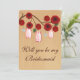 Planning a wedding? You need your friends to hold your hand, help you organise, and make you look perfect on your special day. Popping the question is easy with this will you be my bridesmaid card. Personalise the card by changing the text in the fields provided. You can change font style, size, and colour, paper type and style.