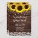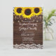 Country rustic sunflower and lace | wood wedding invitation.