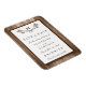 The design features a monogram branch design on a rustic wood effect background.