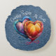 This round throw pillow has 2 beautifully woven yarn hearts in vibrant colours of orange, yellow, red, blue pink and purple, allowing it to fit it almost every colour scheme! The light blue denim coloured background gives it a rustic country feel, while the script lettering elevates it's overall sense of uniqueness as a gift for that friend as close as a sister! The template makes it easy to change the "Country Sisters" to just the word "Sisters" if you'd prefer. Also, note that you also have the option of 2 fabric choices... Brushed Polyester or Grade A Cotton.