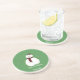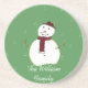 Christmas coaster with a green background and a country folk art snowman in the centre. The snowman is wearing a red hat and scarf. There is a custom space below the snowman for a name or message.