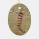 this cute stocking ornament is perfect for the country christmas with an old fashion stocking on a burlap background being hung by popcorn wreath