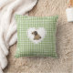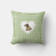 A cute country style green gingham pattern with a quilted patchwork dog with floppy brown gingham ears in the centre of a white heart with sewing stitches.