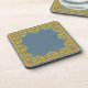 A set of very pretty, square, cork-backed Coasters or Drink Mats, with a border of Pot Marigold flowers on an Indigo background. Part of the Posh & Painterly 'Marigold Medley' collection.