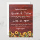 Invite your guests to a celebration of love with these elegant rustic wedding invitations. Featuring a captivating watercolor illustration of sunflowers and string lights against a backdrop of weathered wood, this design captures the essence of a charming country wedding.