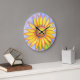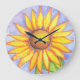 A big sunflower decorates this stylish wall clock. The design is from original art.
