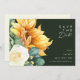 This country sunflower script | dark green horizontal save the date is perfect for your simple classic boho summer backyard barn wedding. Design features a bouquet of vintage watercolor yellow gold and rustic orange sunflowers, elegant modern sage green eucalyptus greenery, and a white ivory rose. The design is ideal for a casual outdoor minimalist fall foliage wedding. Please feel free to contact us with any questions regarding the product's design; cheers!