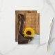 Customise the rustic chic Country Sunflower Western Barn Wedding RSVP Response Card with your specific marriage reply date. These casual yet classy custom ranch style wedding r.s.v.p. cards feature a quaint floral photograph of brown leather cowboy boots, yellow sunflower blossom and barn wood on white satin.