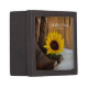 A personalised Country Sunflower Wedding Gift Box makes a thoughtful keepsake gift for the bride to be or her bridesmaids. It can also be used to carry the wedding rings down the aisle at your rural farm inspo or ranch style marriage ceremony. This informal yet elegant custom rustic chic wedding gift box features a quaint floral photograph of brown leather cowboy boots, yellow sunflower blossom and barn wood on white satin.