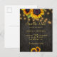 Rustic elegant fall wedding stylish save the date template postcard on dark brown barn wood background featuring yellow gold sunflowers bouquets. +++++++++++ Easy to personalise with your details! +++++++++ You can choose to customise it further changing fonts and colours of lettering. +++++++++++++++++ The invitation is suitable for elegant summer or autumn fall rustic country | farmhouse floral weddings.