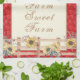 Farmhouse / country themed kitchen towels with watercolor sunflowers on rustic fence and red bandanna background. Customisable "Farm Sweet Farm" text can be personalised.