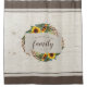 Add this charming country shower curtain to your bathroom decor. The design features a sunflower watercolor graphic on a rustic light wood background. The design is accented with the word "family" which appears in trendy handwritten text. Personalized this farmhouse designed bath mat with your family name.