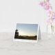 Stunning photo note card of the sun setting over American farm land. Green fields, hay bales and blue sky. Its harvest time in the heartland. Feel free to customise the inspirational quote at the bottom to suit your mood. The quote is about the sunset, darkness & stars. Photograph taken by Liz Robertson in Southwest Ohio. Customise it with your own printed greeting instead if you'd like.
