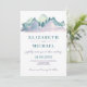 Country Watercolor Blue Mountain Photo Wedding Invitation