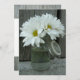A wedding invitation featuring a photo of a jar of daisies in front of a barn. Look for matching items at Jill's Paperie. Wording is from bride's parents.