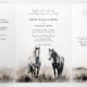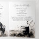 A tri-fold, all-in-one country Western wedding invitation that captures rustic charm with stunning black and white ink sketches. Featuring timeless Western imagery like horses, cowboy boots, and a sprawling prairie landscape, this unique wedding invitation combines artful, hand-drawn elements with modern convenience. A photo template of the couple personalises the design, while a scannable QR code makes RSVPs easy. Additional sections cover the wedding timeline, gifting information, and more, creating a comprehensive yet stylish invitation for your Western-themed celebration. Perfect for couples seeking rustic, cowboy-inspired wedding invitations that blend classic country style with contemporary touches!