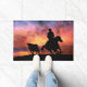 Cowboy door mat. A cowboy and horse rope a steer with a beautiful southwestern coloured sunset in the background.